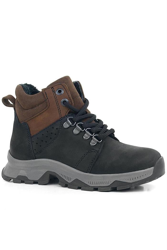 Rakerplus Genuine Leather Black Brown Zippered Trekking Kids Boots 9603-SNK.26