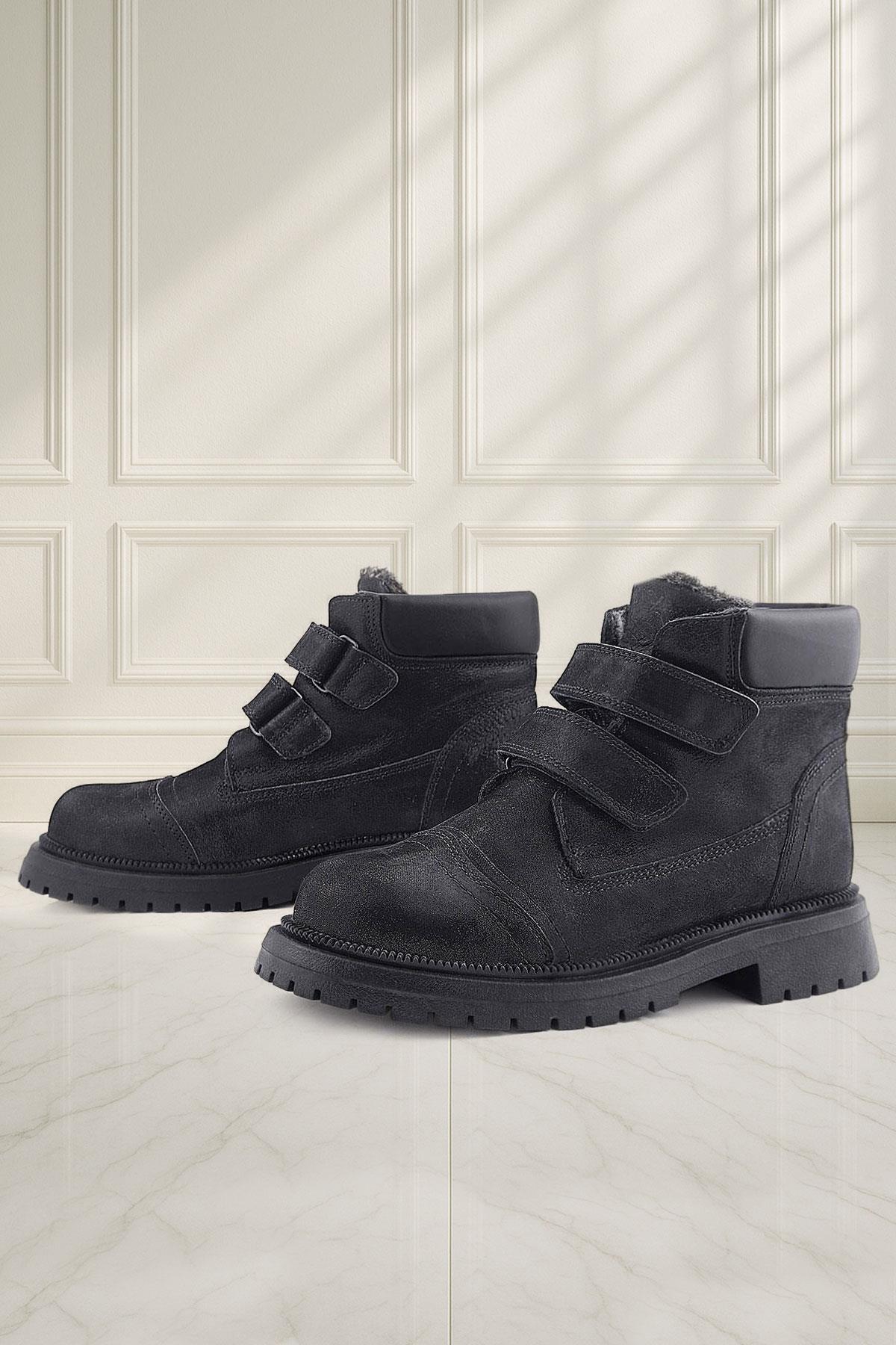 Rakerplus Black Glittery Velcro Genuine Leather Girls' Boots